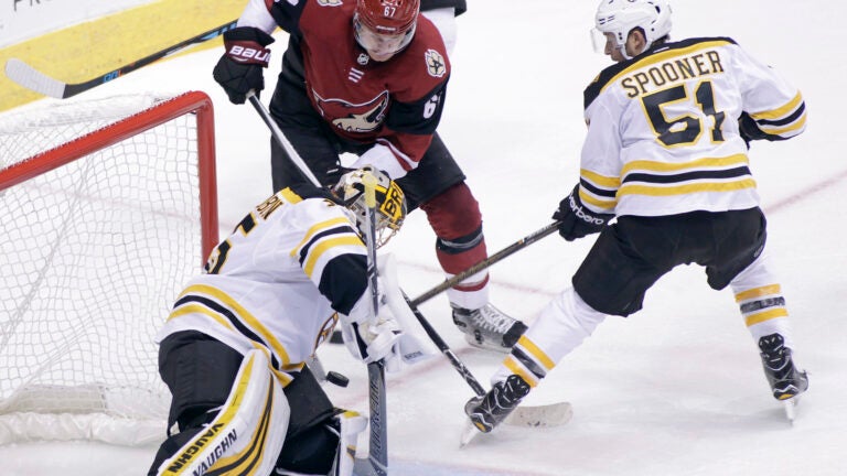 Notes: Boston top center Patrice Bergeron started skating, but sat out for the fourth straight game as he recovers from offseason sports hernia surgery. … Arizona LW Brendan Perlini missed his second straight game with a lower-body injury. … Arizona’s Derek Stepan has an assist in three straight games.