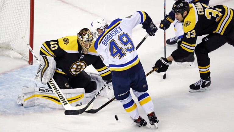 Tuukka Rask makes 32 saves, leads Bruins over Blues 3-1