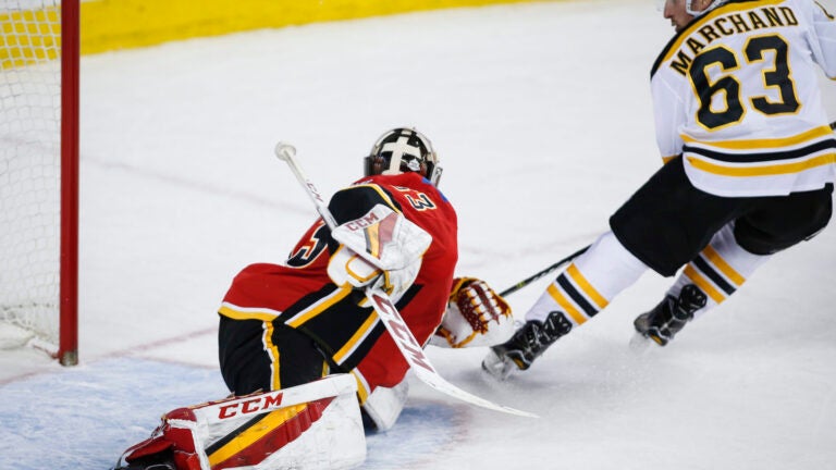 A minute after Calgary tied it, Rittich slid across the crease to get a glove on Marchand’s backhand out of midair after he was set up by Patrice Bergeron.