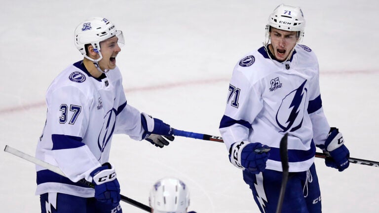 NOTES: Former Red Sox pitcher Pedro Martinez was the honorary fan banner captain, waving a Bruins flag before the game. He was also showed several times on the scoreboard trying to get the fans fired up. … Brad Marchand picked up a second-period slashing penalty and had to be forcibly steered to the penalty box by a linesman while he argued the call. … The Lightning won for just the 10th time in 54 visits to TD Garden. Tampa Bay is 13-9 all-time in Game 3s and 7-5 in Game 3s on the road.