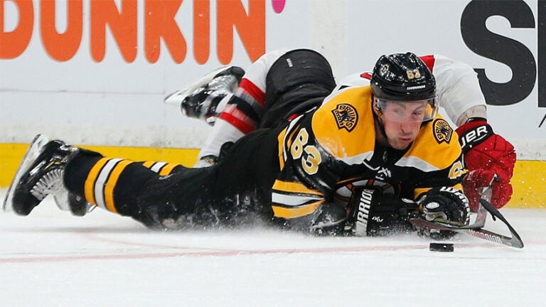 DeBrusk’s return pushed David Pastrnak back to the top line.