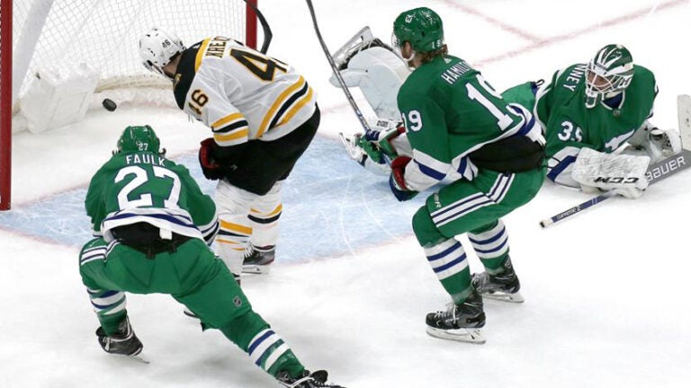 “He just stripped the guy,” Boston coach Bruce Cassidy said. “Most defensemen don’t think that’s going to happen and all of a sudden, he’s got the puck and throwing it to the crease.”