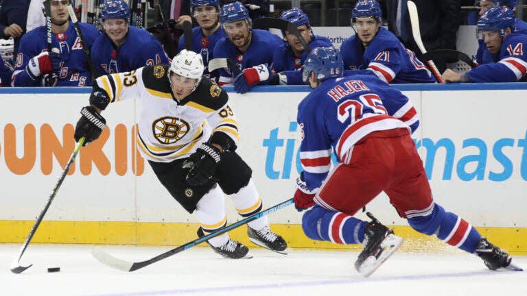 Buchnevich pulled the Rangers back within three at 8:15 with his second of the season, but Bergeron’s second of the night and fourth of the season restored Boston’s four-goal lead with 8:21 left.