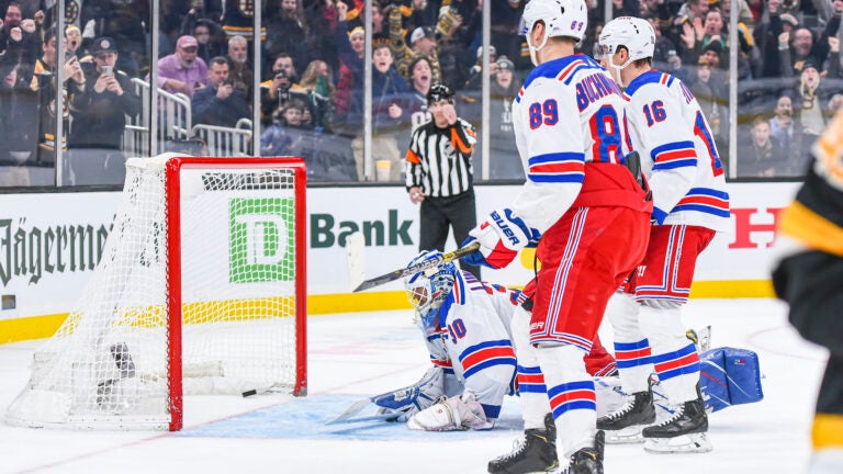 Yet, despite establishing a handful of quality shifts in the first few minutes, the Bruins found themselves in a familiar spot. In a nearly 12-minute span, Pavel Buchenevich beat a stickless Jaroslav Halak late in the first period and Filip Chytil capitalized on a Danton Heinen turnover to give the Rangers a 2-0 lead early in the middle stanza.