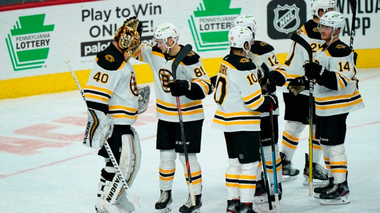 Pastrnak, who had three goals and an assist in Wednesday’s 4-3 overtime win over Philadelphia, had an assist on Marchand’s goal.