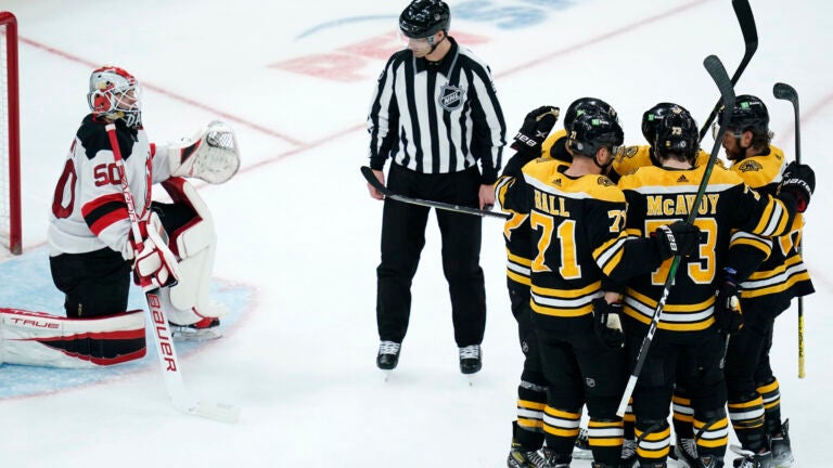 Bruins bust out for 8-1 victory over Devils as Rask is honored