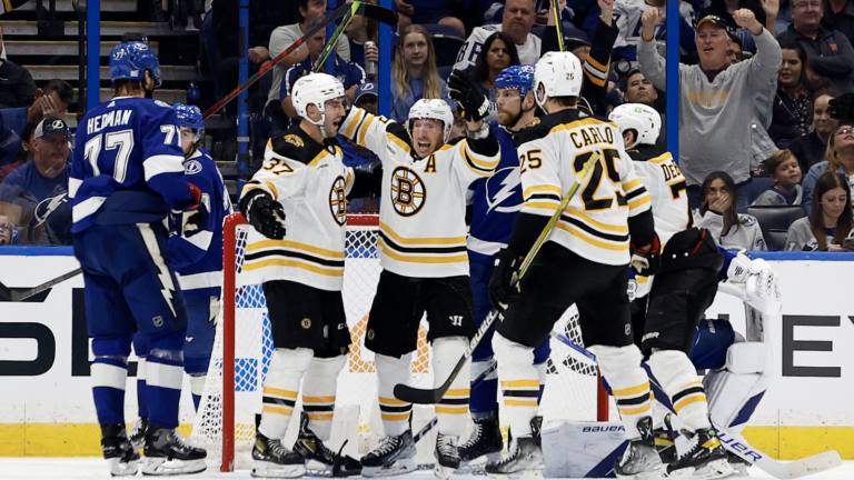 TAMPA, Fla. (AP) — Patrice Bergeron got his 1,000th career point with a second-period assist and the Boston Bruins beat the Tampa Bay Lightning 5-3 Monday night for their seventh straight win.