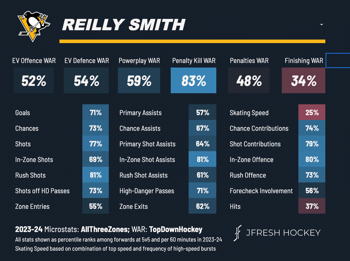 Smith, who recorded 56 points last season with Vegas, has seen his numbers dip this year with a lackluster Penguins team (11 goals, 18 assists in 54 games). But a change of scenery could help Smith out, while his stout two-way game and PK prowess could be coveted on a Bruins team in need of both some scoring punch and some D-zone fortitude.