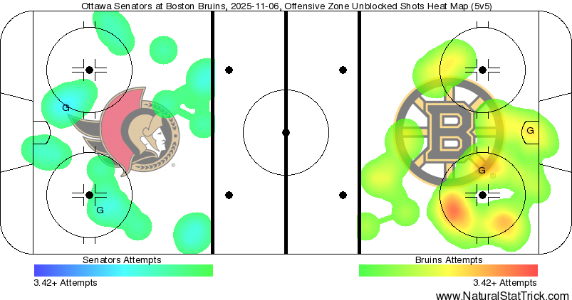 After relinquishing 12 high-danger scoring chances against Ottawa in 5-on-5 play on Oct. 27, Boston limited that same club to just four high-danger looks at 5-on-5 action on Thursday.