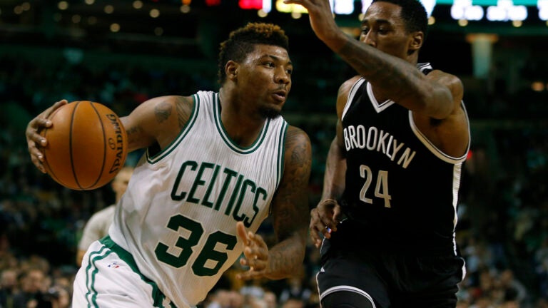 Smart was removed from the Celtics’ 120-95 win on Friday night after appearing to bang knees with Brooklyn’s Thomas Robinson in the fourth quarter. The team initially announced that Smart had been diagnosed with a bruised left knee.