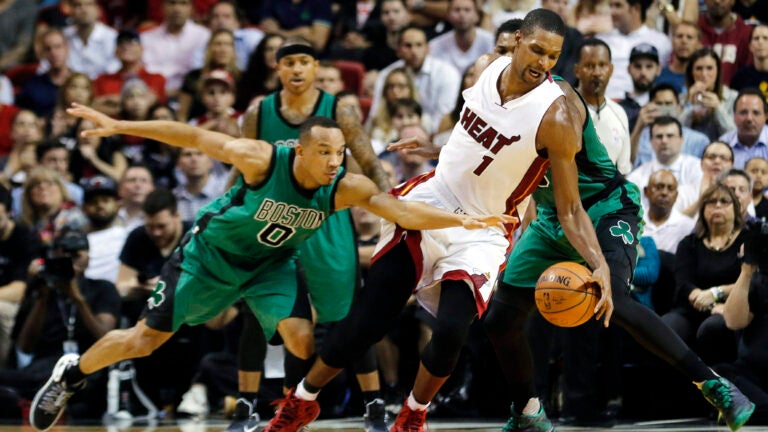Boston was up 94-83 midway through the fourth when Wade got on a tear, scoring eight consecutive Miami points and getting the Heat within five on a layup with 3:24 left. Bosh scored with 2:02 left to cut Boston’s lead to 96-93, but Crowder made two free throws to give the Celtics a bit of breathing room and the Heat never got any closer again.