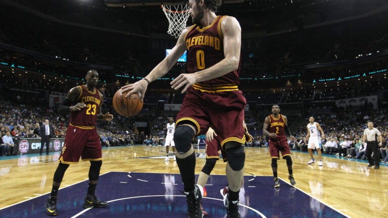 CHARLOTTE, NC - FEBRUARY 03: Kevin Love #0 looks to pass the ball to teammates LeBron James #23 of the Cleveland Cavaliers during their game against the Charlotte Hornets at Time Warner Cable Arena on February 3, 2016 in Charlotte, North Carolina. NOTE TO USER: User expressly acknowledges and agrees that, by downloading and or using this photograph, User is consenting to the terms and conditions of the Getty Images License Agreement. (Photo by Streeter Lecka/Getty Images) Getty Images