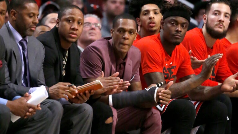 Rajon Rondo may have sat out the Bulls’ Game 3 loss to the Celtics, but his time on the sideline is drawing attention —and not only for his short-sleeve suit.