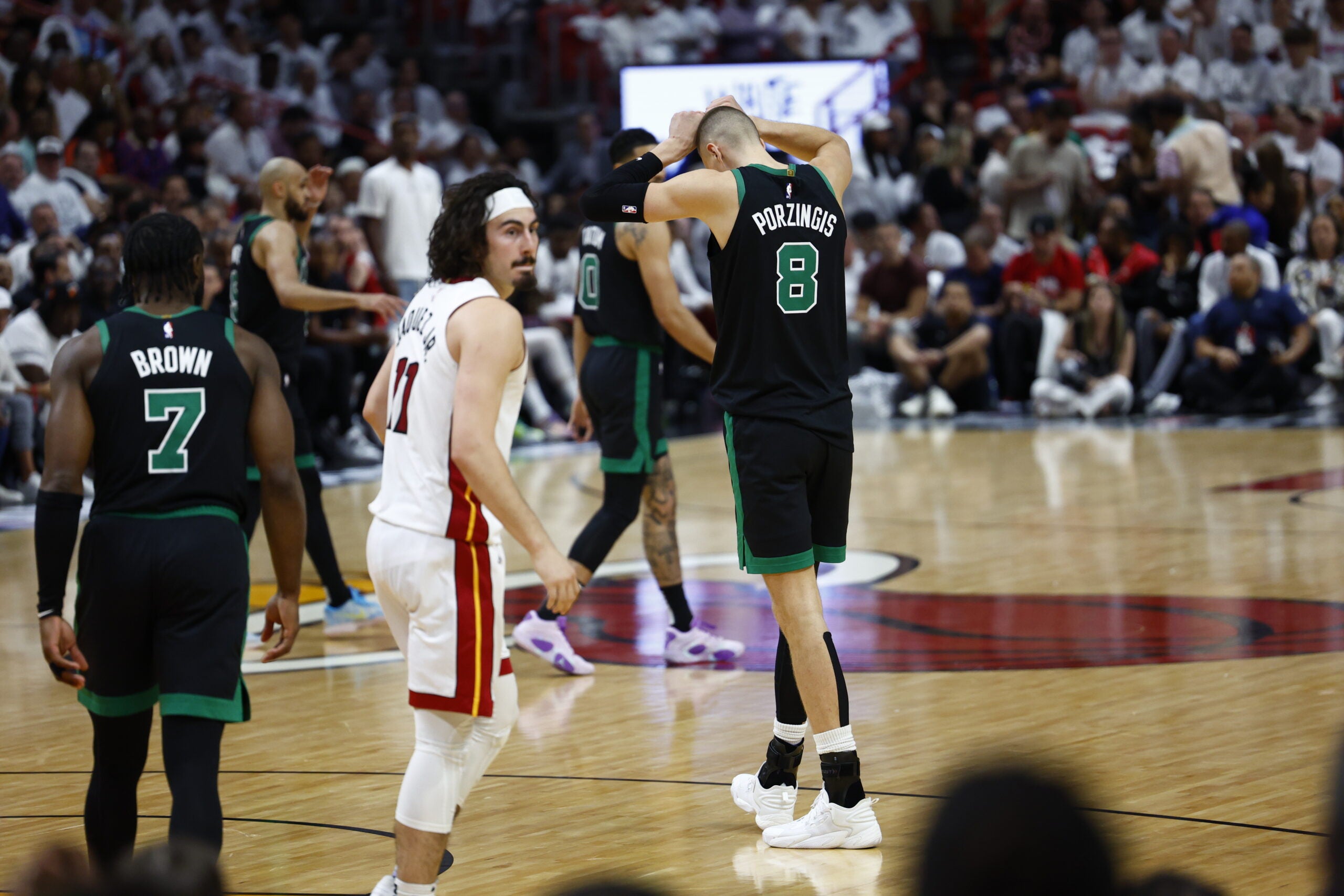The Porzingis injury hovers over everything, of course. The sequence leading up to it was so strange, maybe ominous in retrospect. With 3 minutes, 13 seconds left in the half, he came up hobbling after appearing to step on the foot of the Heat’s Tyler Herro.