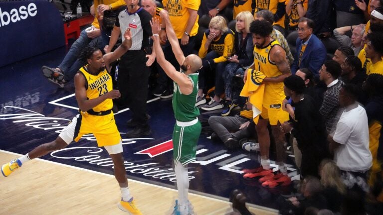 Late in the fourth quarter, Derrick White stood patiently as Jaylen Brown used a screen from Jrue Holiday to drive into the paint. Four Indiana defenders converged on Brown in the middle, leaving White wide open for the go-ahead 3-point attempt with 45 seconds to go.