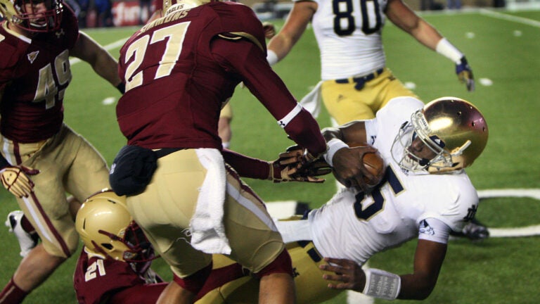 Notre Dame went 10 for 10 on third-down conversions to start the game, a devastating statistic for the BC defense. The offense simply wouldn’t let them on the field, resulting in long, draining drives, spurred on by Golson, as fourth-ranked Notre Dame beat BC, 21-6, at Alumni Stadium.