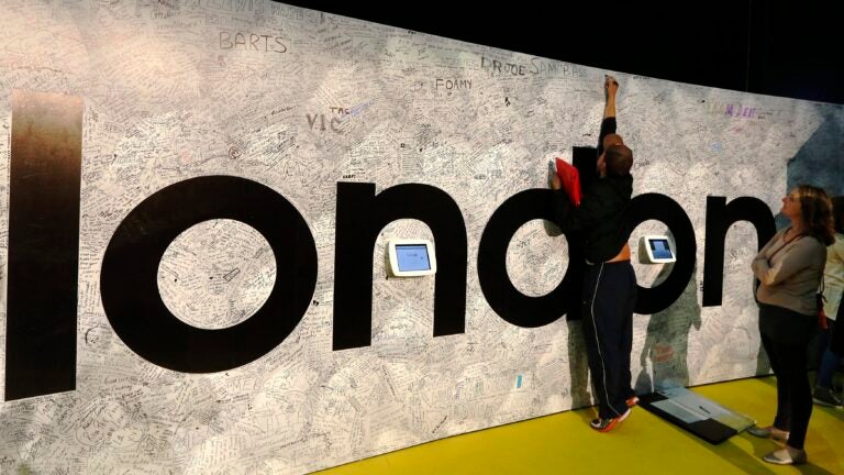 LONDON — At the London Marathon expo entrance, a large display board greeted runners. It featured photographs and logos from the six races that constitute the World Marathon Majors — Boston, Berlin, Chicago, London, New York City, Tokyo. Runners stood in front of the various backdrops and snapped cell phone pictures. Even if they had never run the Boston Marathon, they wanted a picture with the unicorn logo. London Marathon entrants wanted to show their support for Boston in any way they could. The display board was the first of many opportunities in London.
