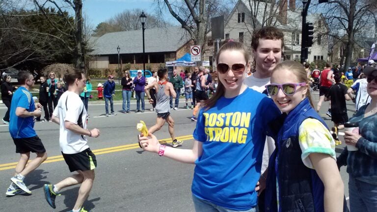 Among the sea of spectators at Wellesley, a group of three kids and an adult woman opened a plastic container filled with bananas and began to hand them out to runners as they passed.