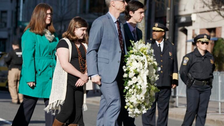 Richard stood Saturday with his wife, Denise, their daughter, Jane, and oldest son, Henry, in silence as bagpipers performed “Amazing Grace.” The Boston Globe (http://bit.ly/2oyLtgG ) reports he briefly hugged a family member of Lu Lingzi, a Boston University graduate student from China who was killed in the second blast.