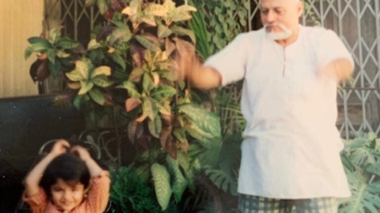 My dad, in India, discovered exercise in his late 40s. Rarely has he willfully taken a day off since. At daybreak as priests chanted into the quiet of the waking sky, he would begin pacing in a large terrace lined with potted evergreens. No special gear, no accompaniments — just him self-improvising through aerobic and yogic repetitions. Loathe to any disruptions in his 80-minute routine, even age has had to acquiesce. Now, at 83, his pace has slowed and his balance isn’t what it once was, but the exacting regimen has remained unassailable. His steadfastness, initially foreign, became familiar when I discovered running way into my 30s. It was freeing — the morning sun, an undulating road ahead, and music. At first, lacking any real athleticism, I tackled short distances, but over time I built endurance. On weekends, I ran as far as my legs could carry me away from home and then weaved my way back, putting one foot in front of the other, totally spent. My limbs did all the work but a rhythmic high rebounded inside. This pattern miraculously has carried me through three marathons so far. New in Boston, I was searching for ways to connect. I resumed running. The Longfellow aglow in the morning sun and the Charles playful, I was soon hooked again. When an opportunity arose for a charity run for children in need, I applied. Self-doubt has erupted tens of times since, especially when I picture encountering hills starting at mile 18! But a step at a time, I am cranking it up. When I hit a wall during training, I picture my dad still grinding out his morning routine, as if to free himself of time’s toll, even if momentarily. I will be the one running April 15, but he’ll give me the fuel.Check out our entire “Why I’m Running” series.