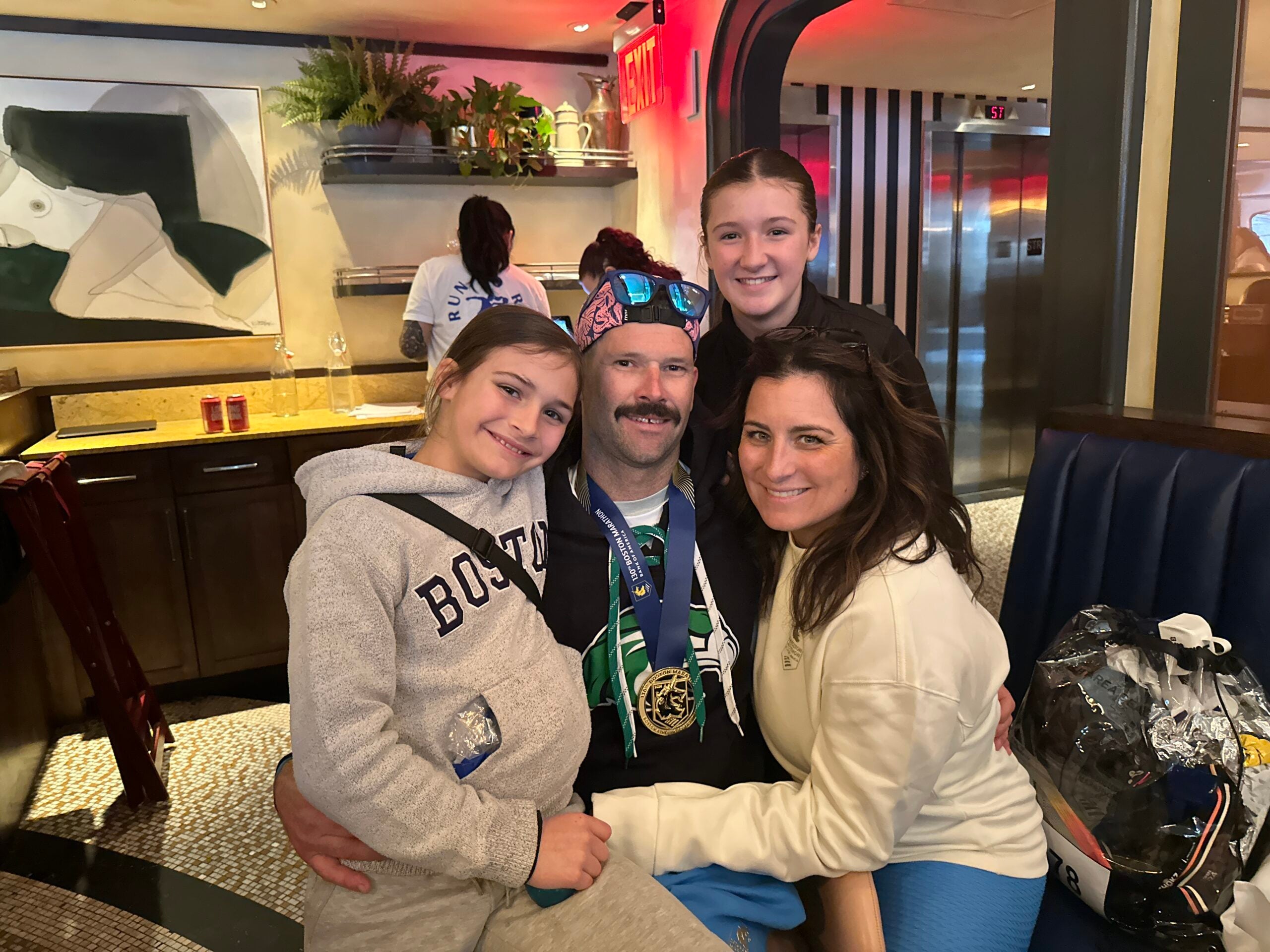 Runners and their guests were piling into the two-level restaurant on Monday, and around 3:30 p.m., several of them were greeted with the sounds of cowbells and applause from celebratory spectators.