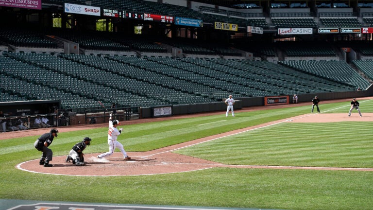 The Baltimore Orioles beat the Chicago White Sox, 8-2, on Wednesday at Oriole Park at Camden Yards in the first major league game ever played in front of zero fans.