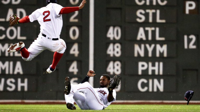 Watch Jackie Bradley Jr. avoid colliding with Xander Bogaerts to make a sliding 11th-inning catch