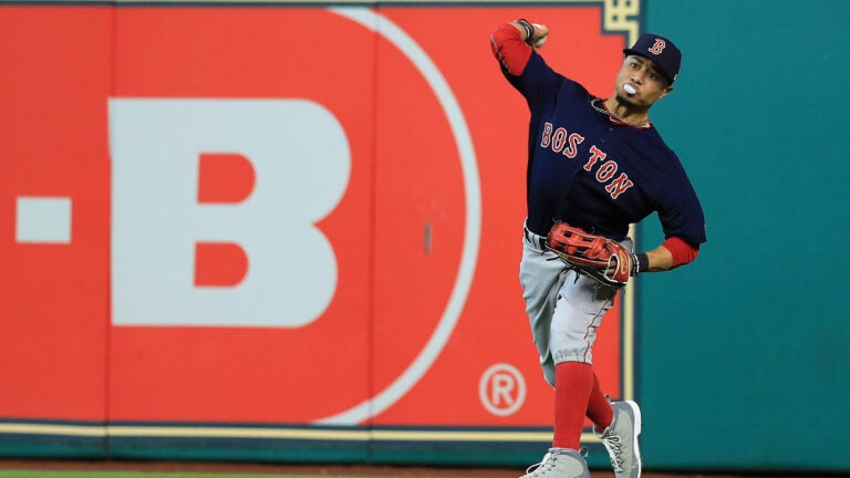 After seemingly re-injuring his left wrist during an at-bat in the top of the eighth inning of Game 2 against the Astros, Mookie Betts did not return to right field for the bottom stretch. Rajai Davis replaced the All-Star for the remainder of the game, as Betts received medical attention in the dugout.