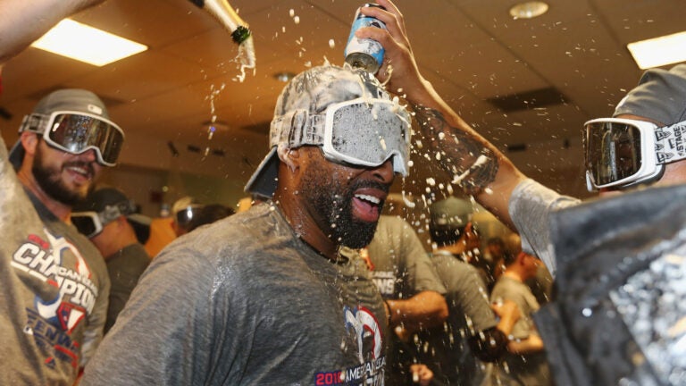 After eliminating the Yankees and clinching the ALDS on October 9, the Red Sox were popping some celebratory champagne in the clubhouse when Austin was hit with a flying cork.