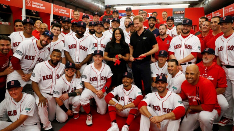 On Saturday, though, the Red Sox met a different type of royals: the Royal Family, as Britain’s Prince Harry and Duchess of Sussex Meghan Markle entered the team’s clubhouse in London prior to a game against the Yankees.