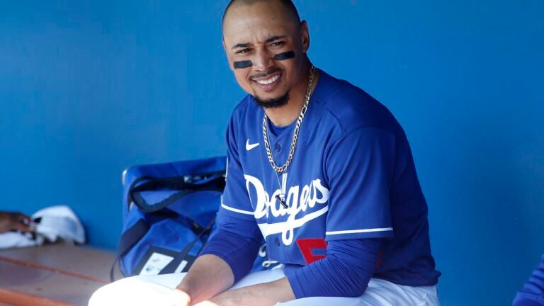 The all-star outfielder was traded by the Red Sox to Los Angeles in February, along with pitcher David Price, in exchange for outfielder Alex Verdugo and prospects Jeter Downs and Connor Wong.