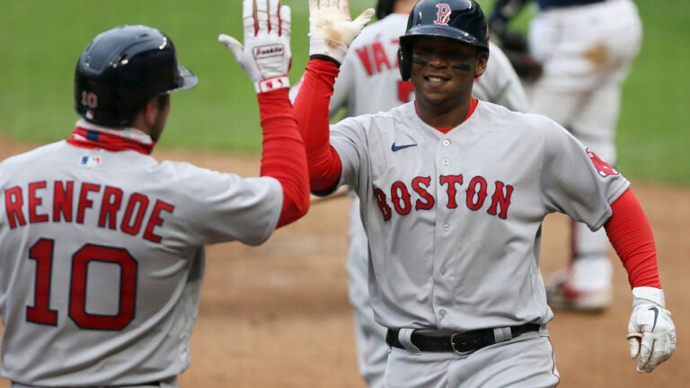 Christian Arroyo led off the eighth against Dobnak with a double and scored on Dalbec’s second double of the game to right field to break a 2-all tie. Arroyo had two hits and scored on both of Dalbec’s doubles.