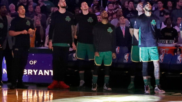Bryant’s No. 24 was illuminated in lights on the court as Celtics fans joined the organization for 24 seconds of silence. Then, following a video tribute that included cameos from current and former Celtics, the arena erupted in cheers.