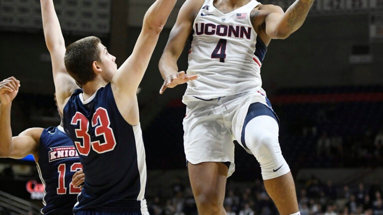 Coach Kevin Ollie held his star guard out of the team’s season-opening win over Colgate. The junior scored 19 and 12 points in the two games since returning to the Huskies (3-0), who play Oregon on Thanksgiving night in the PK80 tournament in Portland.