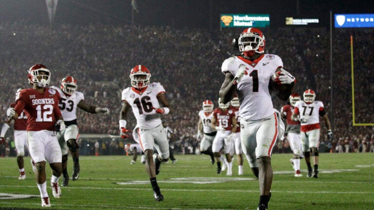 PASADENA, Calif. (AP) — After ending the first overtime Rose Bowl, one of the greatest Granddaddies of Them All, Sony Michel was swarmed by Georgia teammates as he broke down in tears.