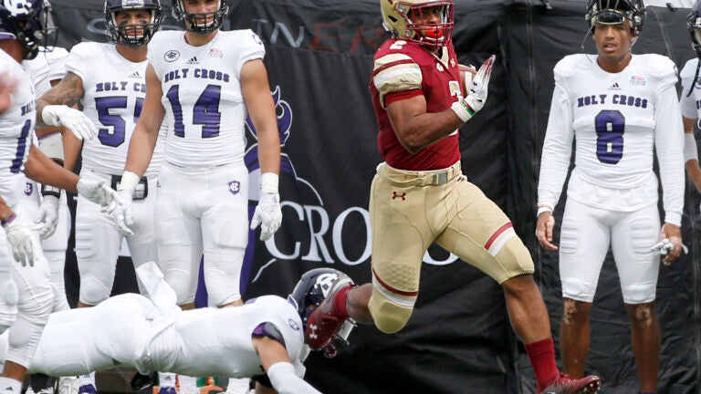 AJ Dillon scores 3 TDs as BC beats Holy Cross in rivalry renewal