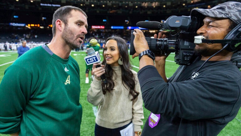 ATLANTA (AP) — Steve Ensminger wiped tears from his eyes after first walking onto the football field at Mercedes-Benz Stadium for LSU’s pregame warmups.