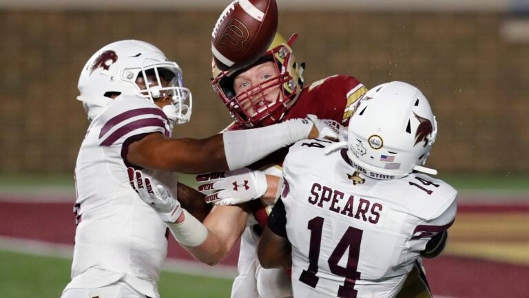 A Notre Dame transfer, Jurkovec completed 26 of 38 passes for 210 yards, with one touchdown and one interception; he also ran in BC’s first two scores, from 2 and 3 yards out. Long caught nine passes for 81 yards for the Eagles, who entered the game as a 21.5-point favorite.