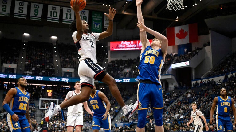 Alex Karaban opened the game with a layup and the Huskies scored the game’s first 10 points, holding Xavier without a point for the first four minutes.