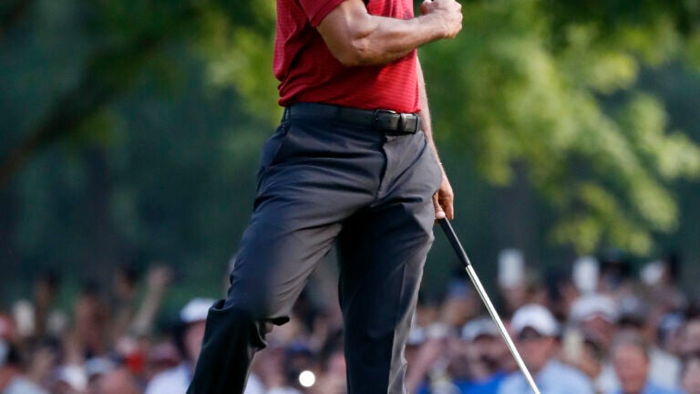 On No. 18, Woods offered one final flourish. He drained his longest putt of the tournament, a 19-footer putt for birdie, and pumped his fist to celebrate.