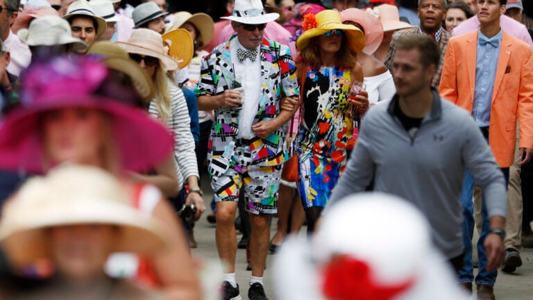 Amid the usual Derby fare of celebrities, pomp and fashion, there was a quirky side. Peggy Miller plodded around the track dressed as a trash can filled with empty beer cans. “I’m representing all the partiers,” the 59-year-old Derby regular said.