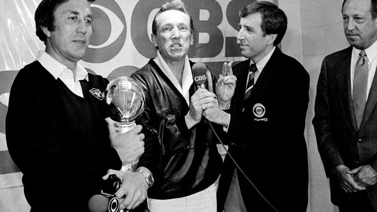 He was behind the mic for one of college football’s most memorable plays, Doug Flutie’s “Hail Mary” pass that beat Miami for Boston College in 1984. He confessed to Flutie later that it took him awhile to identify Gerard Phelan, Flutie’s roommate, as the receiver for that pass — and Flutie told him he didn’t know, either, until he had run off the field.