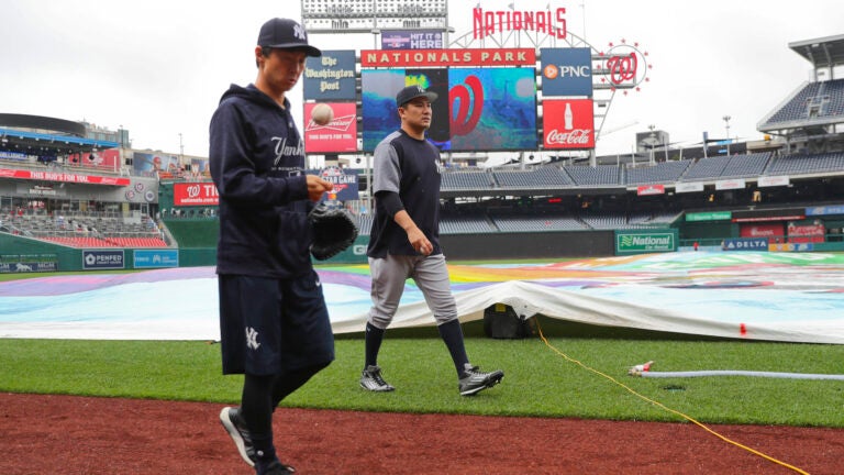 The New York Yankees spent Wednesday night at Dulles International Airport in suburban Virginia, stuck after their matchup against the Washington Nationals was rained out.