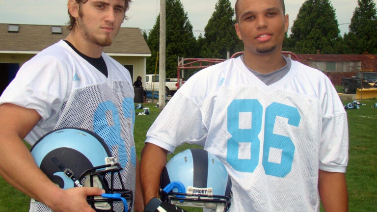 Andrew Siden is a powerful 6-foot-4, 235-pound tight end from Natick’s class of 2011, while Robbie Jackson is a 6-foot-2-inch burner at wide receiver who graduated in 2010. They may be new faces at URI, but the pair has already made an impression on coach Joe Trainer.