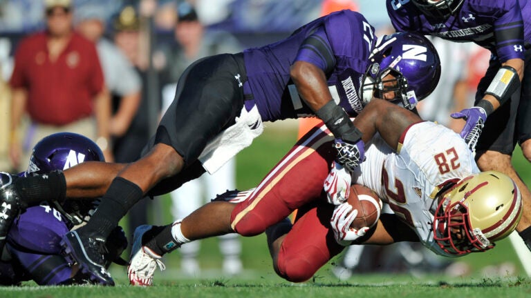 BC held the lead late in the opening half and never trailed by more than 6 points until Northwestern scored on its final possession, Trumpy’s 27-yard run being the Wildcats’ only touchdown.