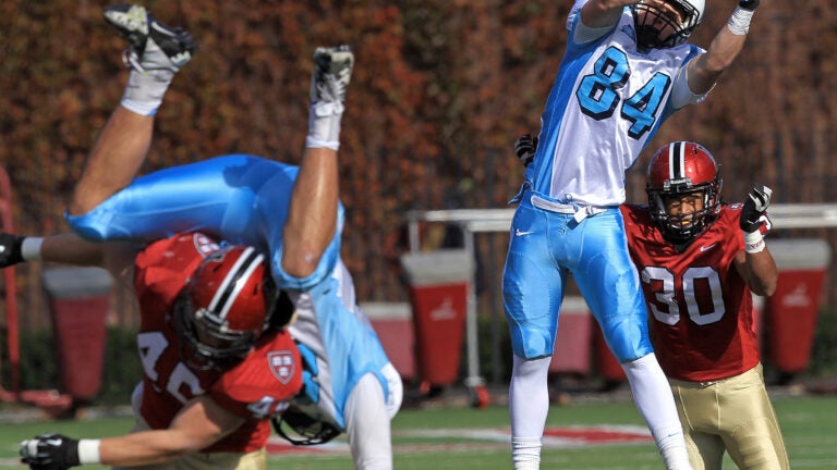 Harvard rang up 42 first-half points on a youthful Lions program still finding its way under first-year coach Pete Mangurian, including a program-record 35 points in the second quarter on the way to a 69-0 romp before 5,838 at the Stadium. (The previous mark came on Oct. 13, 1973, when Joe Restic’s club lit up Columbia for 29 points in one quarter in a 55-0 win).