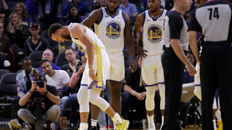 Curry was injured while driving to his left while defended by Kelly Oubre Jr. and with big man Aron Baynes standing in the paint. Curry leapt with the ball then came down head first, landing awkwardly on his hands as he tried to brace himself. Baynes then landed on Curry’s left hand. The 31-year-old Curry grimaced in pain, grabbing at his fingers then walking to the locker room.