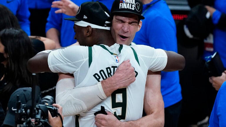 Justin Holiday, Jrue’s brother, played in a game with Golden State during the 2015 finals. And Kostas Antetokounmpo — Giannis’ and Thanasis’ brother — won a ring with the Lakers last season but didn’t play in the title series against Miami.
