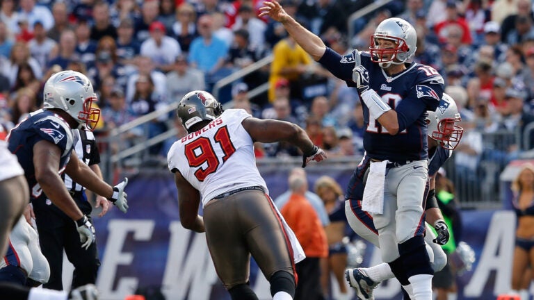 New England’s next possession was kept alive by an illegal contact call against the Buccaneers, after it looked like Brandon Bolden pulled up on a deep sideline route, not expecting Brady to throw to him, and it got new life again on a pass-interference call against cornerback Johnathan Banks on a pass intended for Dobson.