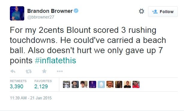 Brandon Browner didn’t hide his feelings from the Twitter universe Wednesday, offering up his rebuttal to Deflategate.